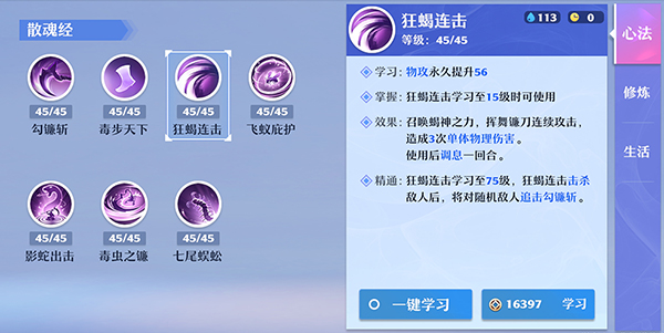 注释:万毒门招牌技能 — 狂蝎连击